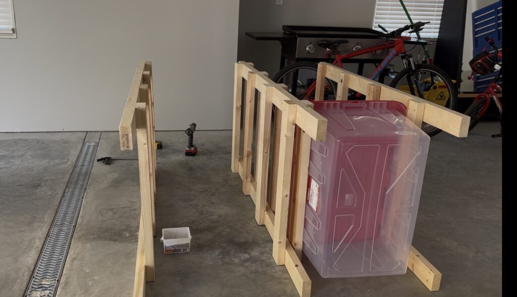 This DIY storage tote rack is a practical and customizable solution for organizing 27 gallon storage totes. It uses affordable materials, basic tools, and can be easily modified to fit different tote sizes or storage spaces.