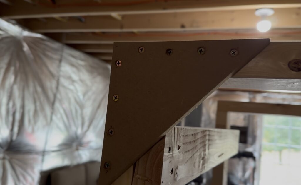 Using three screws per runner helps prevent the rack from flexing or racking over time. Checking for square at each step helps avoid compounding errors later.